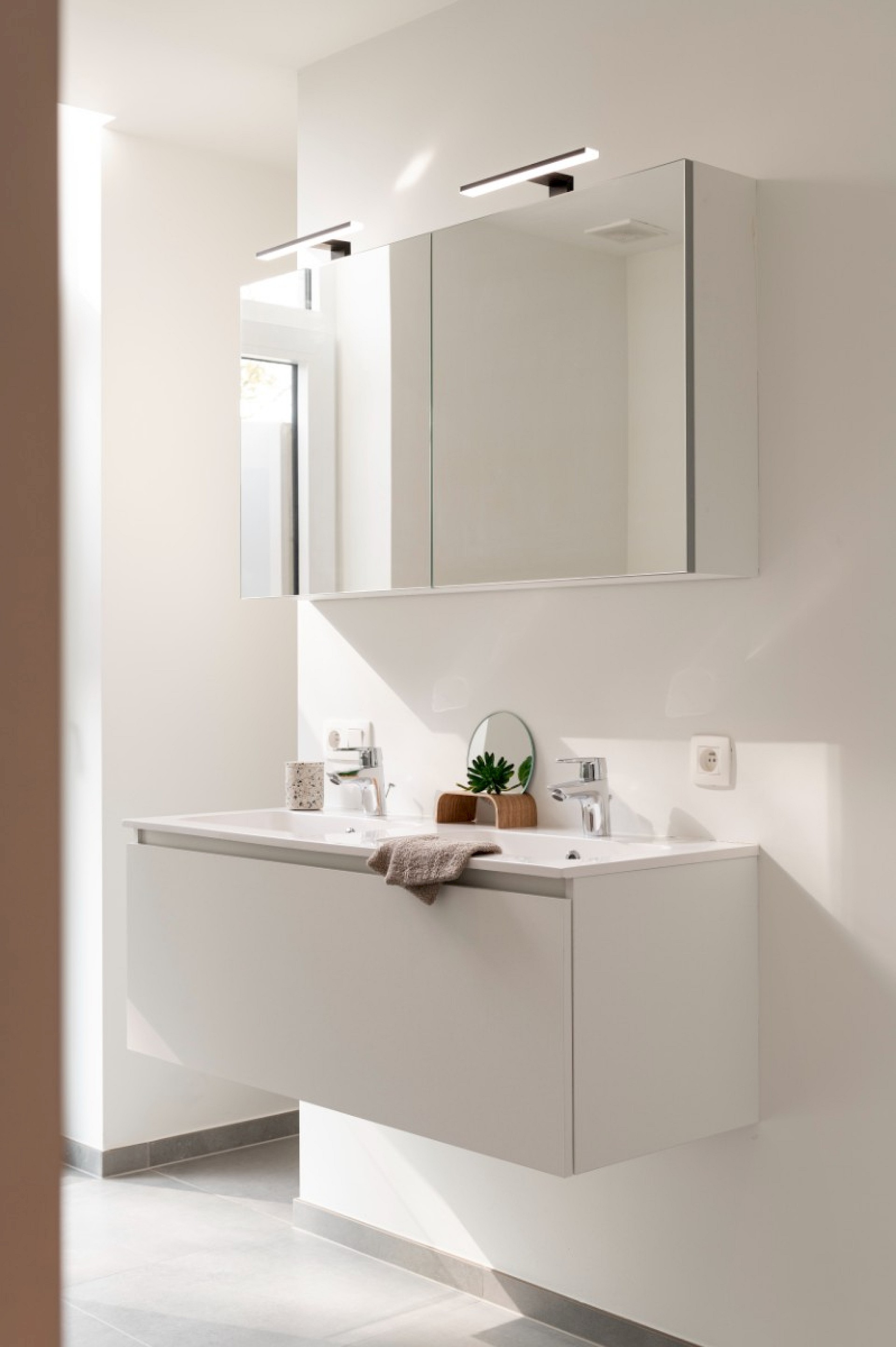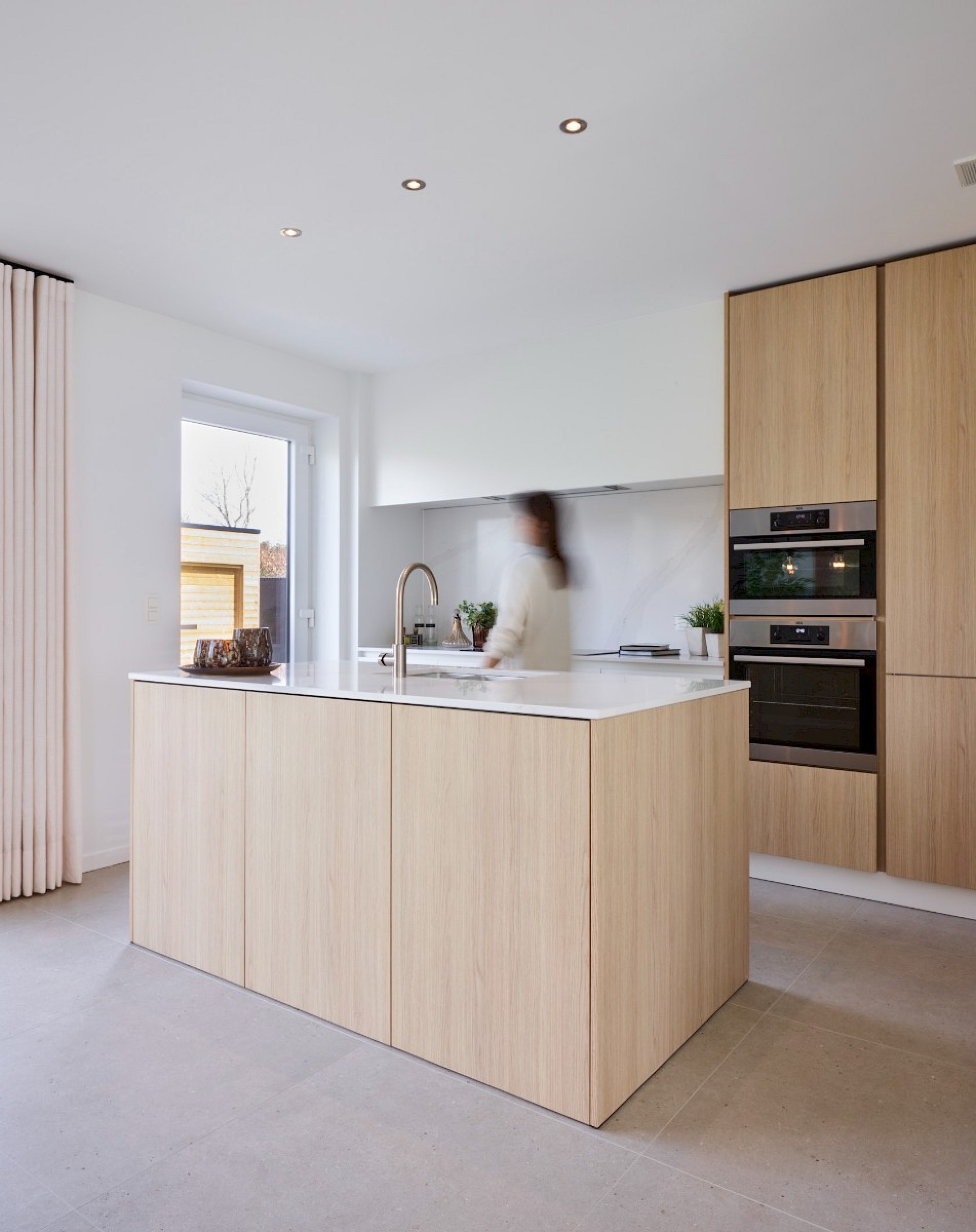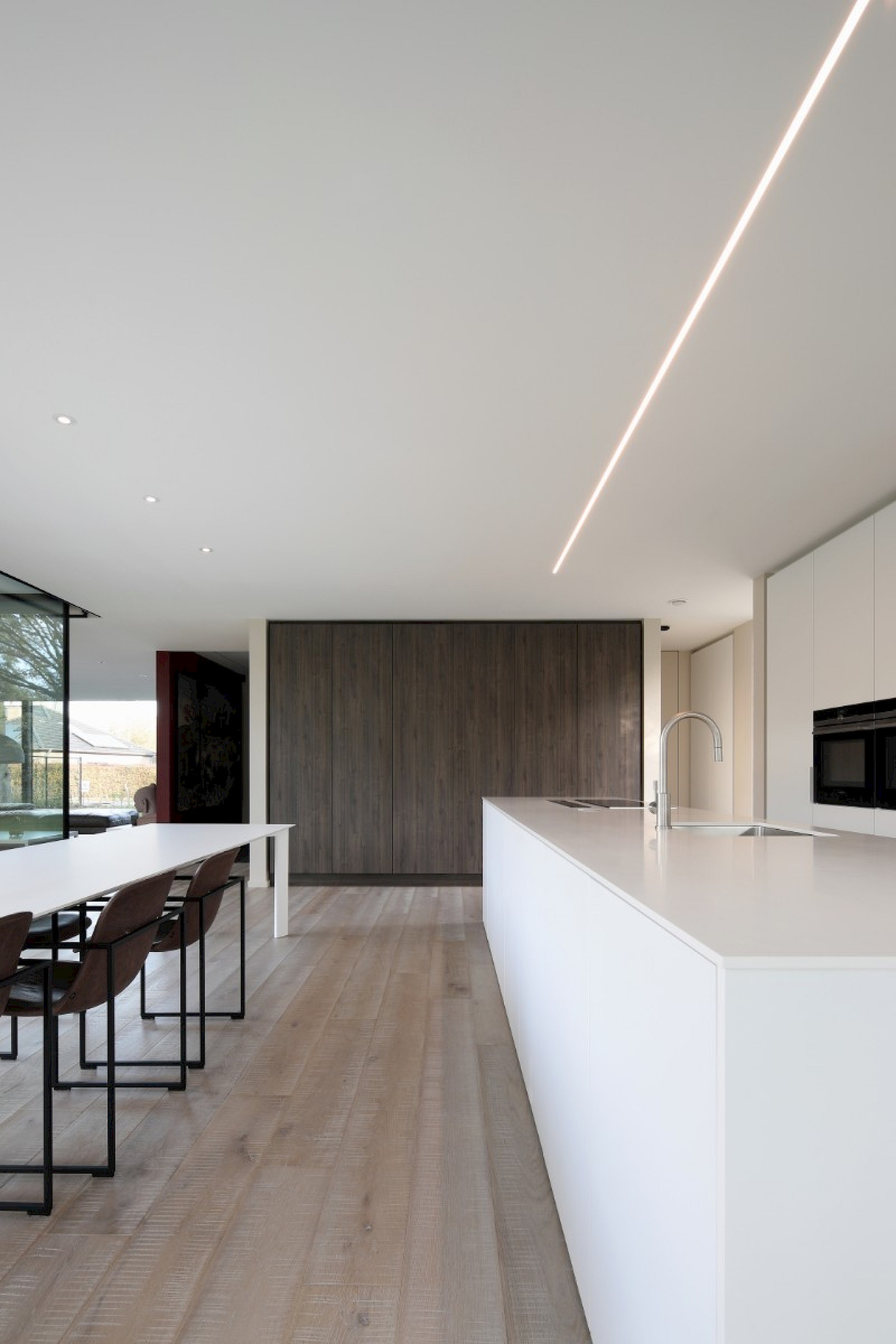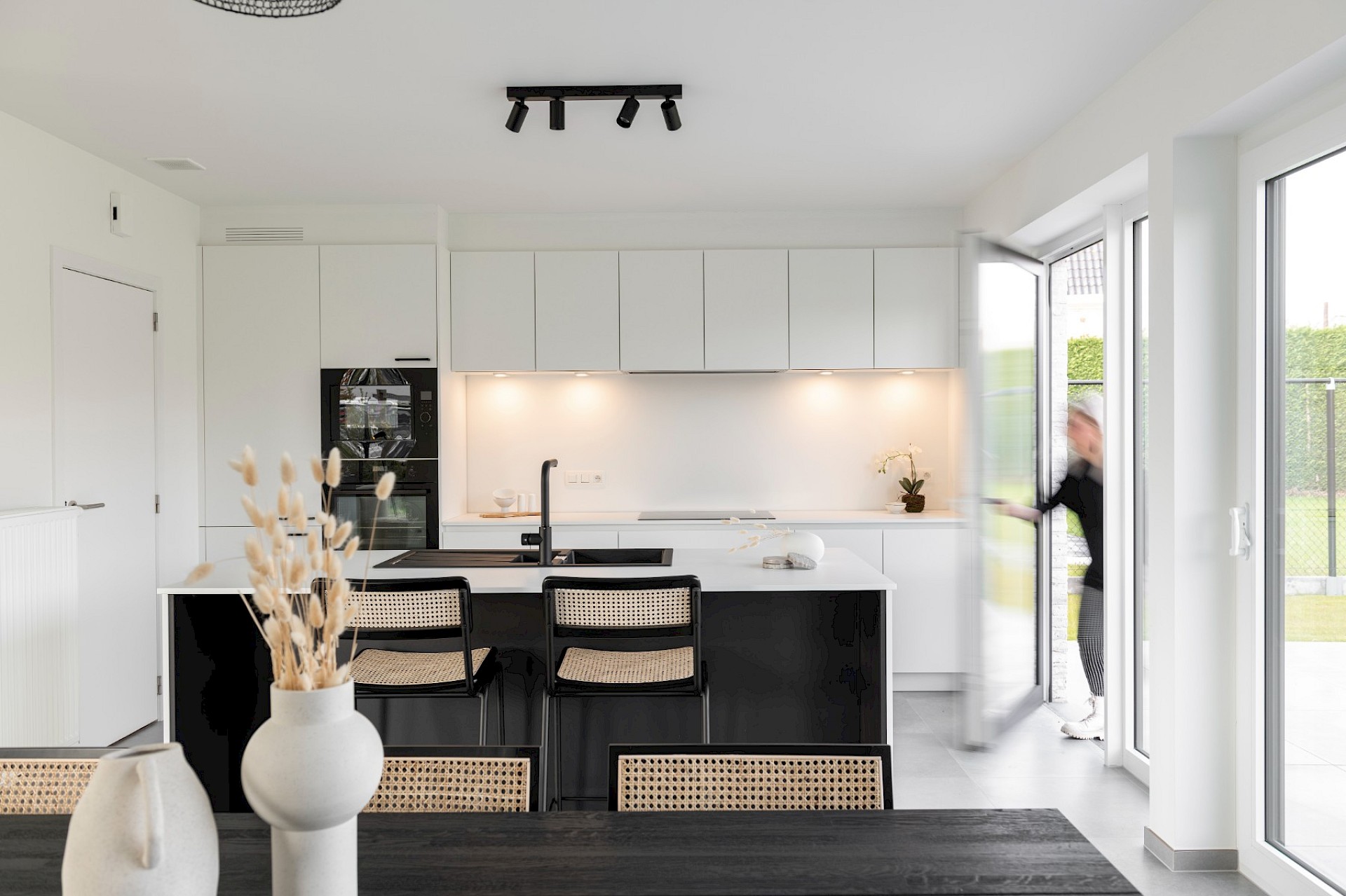 Een modern huis is niet koud, maar juist warm en uitnodigend door de persoonlijkheid die je er zelf in kan leggen. Je kan de stijl van de architectuur doortrekken in het interieur en kiezen voor een minimalistische inkleding en strakke meubels. Of je doet iets helemaal anders en contrasteert de eenvoud van het huis met ronde vormen in verrassende kleuren, of met planten en natuurlijke materialen.